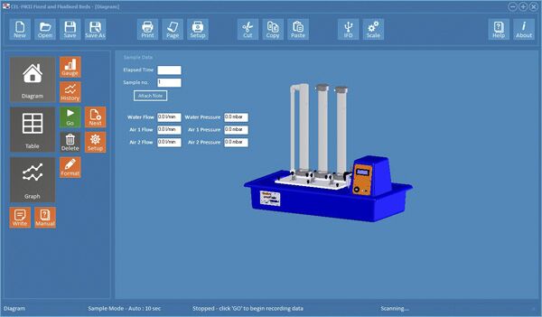 The CEL-MKII is designed to facilitate the study of flow through fixed and fluidised beds of solid particles.