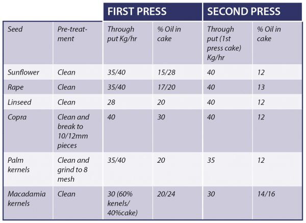 The power source is a 4kW, four-pole, three-phase electric motor.Typical throughput data for various seeds is shown in the table below.