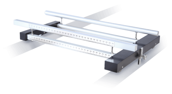 - Adjustable instrument rails with positioning scales fitted over the whole working length