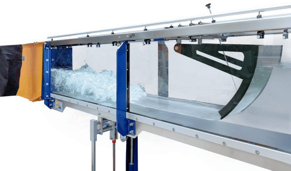 The most important aspect of a tilting flume is retaining the integrity of the working section. To achieve this requires an extremely rigid design which ensures almost no deflection regardless of load or tilt.